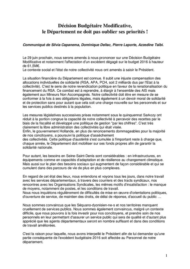 Le 29 juin prochain, nous serons amenés à nous prononcer sur une Décision Budgétaire Modificative et notamment l’affectation d’un excédent dégagé sur le budget 2016 à hauteur de 61,5M€.