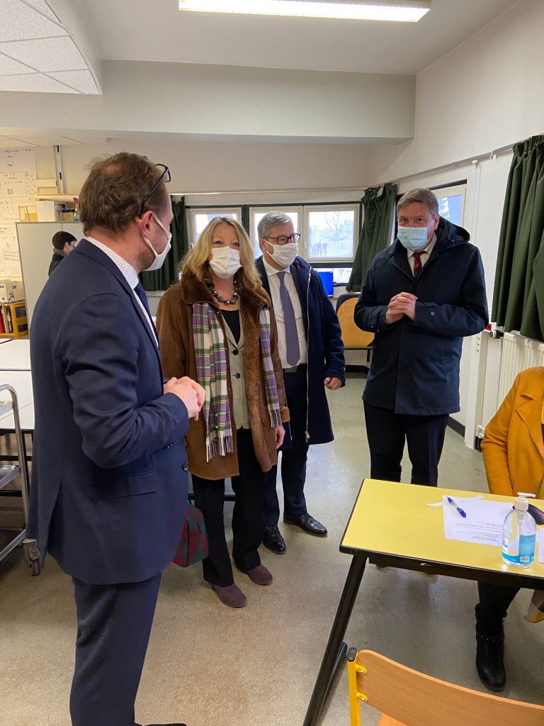 Toute l’équipe du collège était fortement mobilisée auprès des élèves, des infirmières et personnels chargés de procéder aux tests antigéniques, les élèves patientant ensuite dans une classe transformée en salle d’attente pour connaître les résultats. Une organisation complexe et sans faille, menée dans l’urgence, qui aura permis de tester aujourd’hui plus de 300 collégiens munis d’une autorisation parentale ainsi que des adultes – enseignants et personnels du collège. La même opération de dépistage est également en cours au collège Picasso.